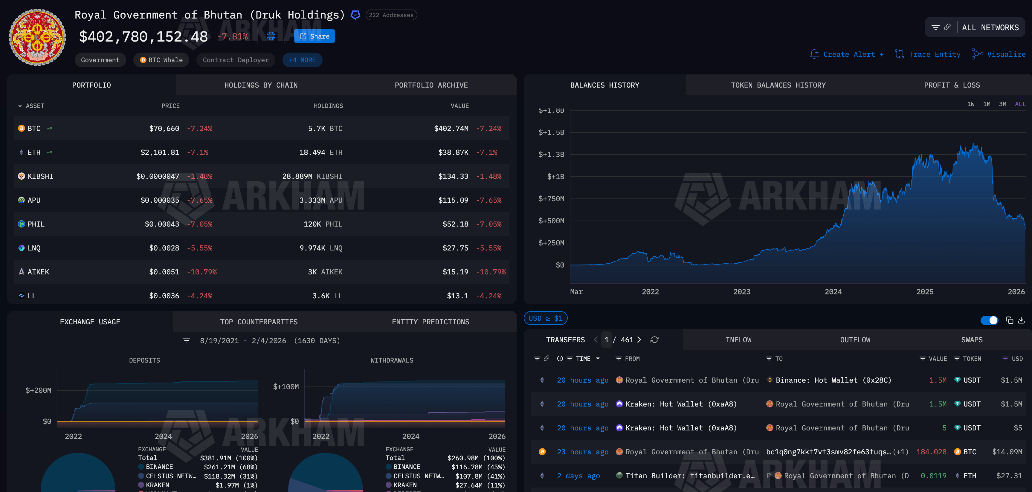 - In a rather theatrical twist, the Bhutanese government took its bitcoin wallets out of their three-month slumber, moving a staggering 184 BTC-worth about $14 million-while the crypto world threw a tantrum.