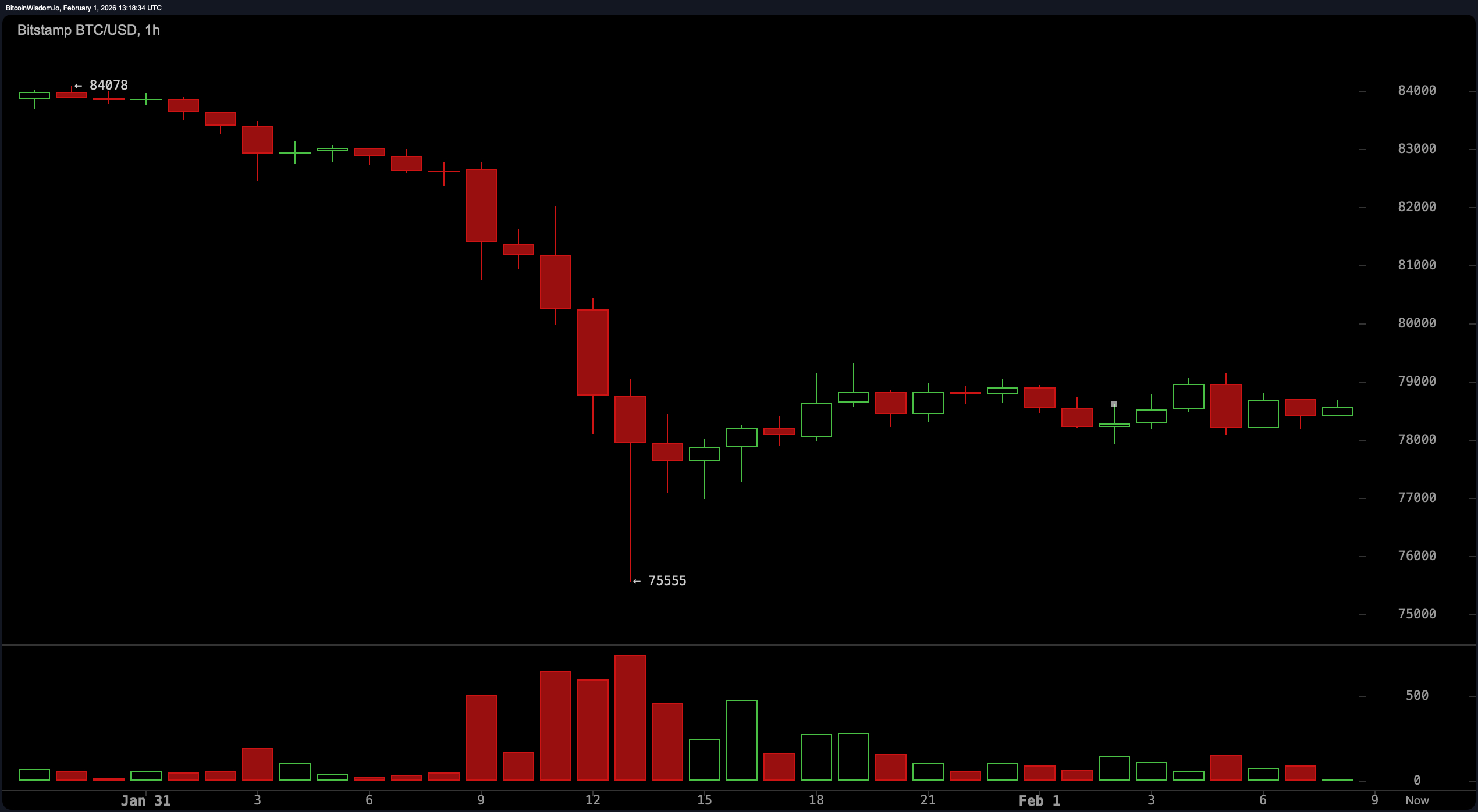 Behold, the digital darling, Bitcoin, prances upon the stage of finance, priced at a staggering $78,634 as of February 1, 2026. Its market capitalization, a mere $1.57 trillion, swells like a puffed-up peacock, while its trading volume, $83.65 billion in the past 24 hours, froths with the frenzy of a mob at a fire sale. Intraday, it pirouettes between $77,082 and $82,733, a performance more tragic than comic, as the market attempts to suture its wounds with the threadbare cloth of hope.